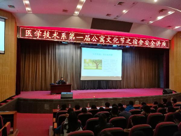 (医学技术系)为了增强学生宿舍安全防范意识,强化自我保护能力,杜绝宿舍安全隐患。医学技术系第一届公寓文化节之“宿舍安全教育讲座”于今天下午15:50在未央校区学术报告厅顺利召开。