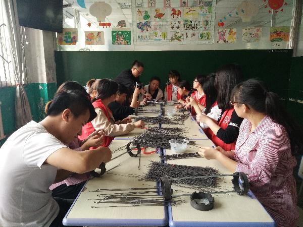 志愿者们认真的做灯笼