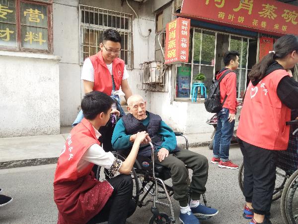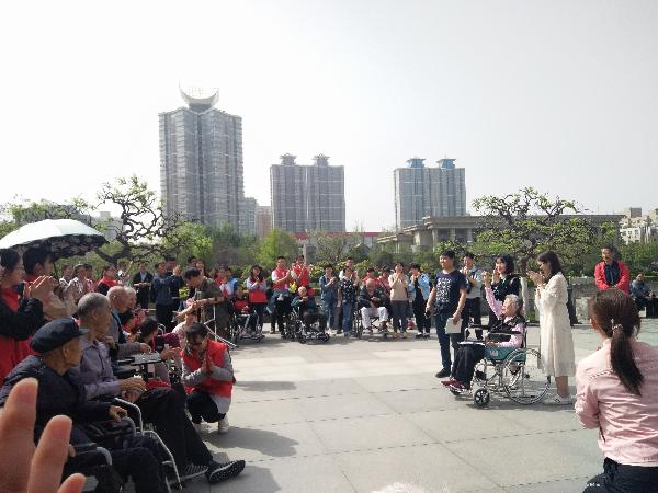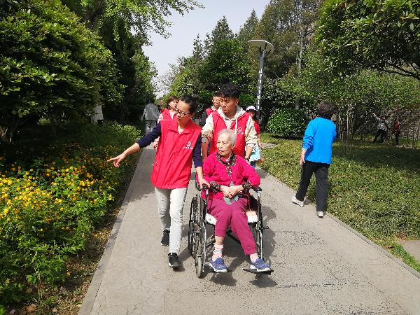 在碑林区第三爱心护理院,志愿者们帮助行动不便的老人们举办了一次春季游园活动。整个活动过程中,队员们一边走一边与老人们唠着家常,有说有笑,温馨场面。护理院的王爷爷为大家演唱了歌曲《打靶归来》、《南泥湾》,李奶奶也热情的为大家朗诵《北京的金山上》,老人们发自内心的喜悦感染着每一个人。
