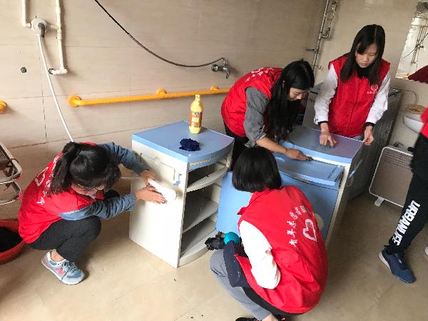 清晨,在amjs澳金沙门线路首页馨艺志愿者服务队的带领下党员同志们开始了一天的行程。志愿服务整个过程同志们积极主动参与到各项服务工作中,如护理院打扫卫生、陪伴护理院的老人聊天以及协助老人进餐等。志愿活动结束时护理院的负责人给予此次志愿活动充分的肯定,希望同学们可以通过志愿服务感悟感恩的真谛、互帮互助。