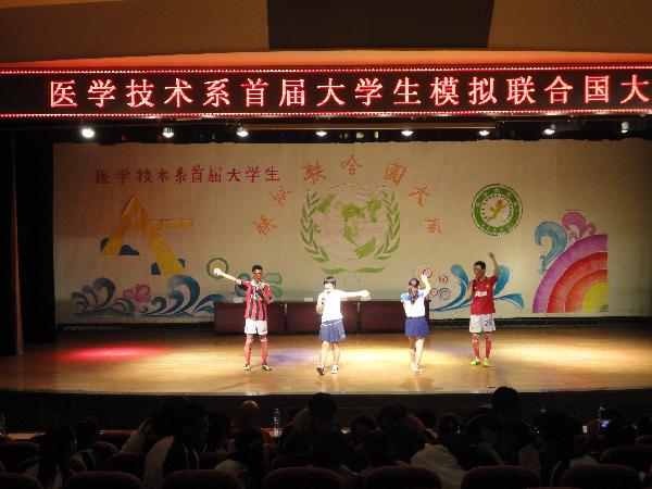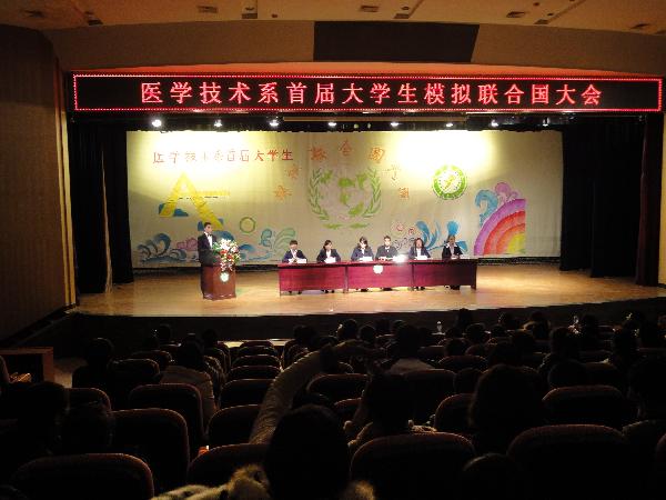 2013年11月28日晚7点,由医学技术系团总支主办、医学技术系学生分会承办的医学技术系首届大学生模拟联合国大会在西安医学院学术报告厅盛大召开。当晚,来自医学技术系的八个班级分别代表南非、新西兰、日本、印度、德国、中国、巴西、美国参加了本次会议。担任本次模联大会的评委有医学技术系党总支书记白万晓老师、医学技术系党政办公室主任任熙玲老师、医学技术系学生工作秘书吕宝老师、临床生化与免疫病原检验教研室梁晓萍老师以及临床检验基础及血液检验教研室黄君华老师。