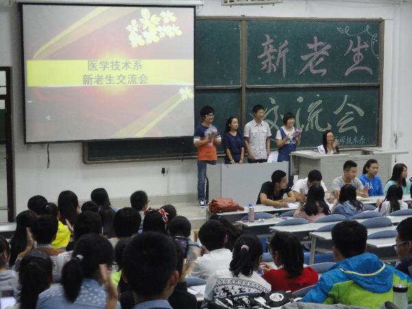 医学技术系于2014年9月24日星期三晚7:00整在教二阶举行了2014年“新老生交流会”。出席此次交流会的嘉宾有医学技术系学生会全体干部及部分2014级新生。
