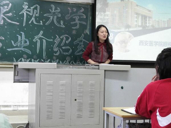 会上,朱丹老师对本校眼视光学的开设由来、涉及的领域及该专业的独特地位作了简短介绍,叙述了学院在眼视光教学方面的优势,让同学们对眼视光学的发展前景充满希望,对学好这门专业充满自信。