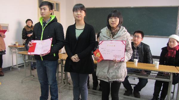 “和谷奖学金”由热心于眼视光专业发展和人才培养的西安和谷眼镜商贸有限公司捐资设立,每年捐助奖金5000元,奖励在眼视光专业技能方面具有突出表现的眼视光专业全日制本、专科学生。考评人员由和谷眼镜人事部邢经理、营运部周经理、财务部赵经理及眼视光医学教研室刘文兰、闫瑾老师组成。奖学金评定创新性地采取了根据案例进行小组内角色扮演、回答考评人员提问,根据表现综合打分的形式。整个评定活动过程精彩热烈,角色扮演惟妙惟肖:有恶意挑刺的顾客、有热情服务的店员、有激情饱满的店长、有认真负责的验光师、有耐心沟通的眼科咨询师......在轻松愉悦的模拟情景中,考查了学生们的眼视光专业技能应用能力、分析解决问题能力、协调沟通能力及小组配合能力。经过5个小时的激烈角逐,最终眼视光本科1201班白璐、曹亮、田引娣同学分获第一、二、三等奖,第八小组获最佳团队奖;眼视光技术1206班朱肖肖、慕慧、吴攀同学分获第一、二、三等奖,第四小组获最佳团队奖。