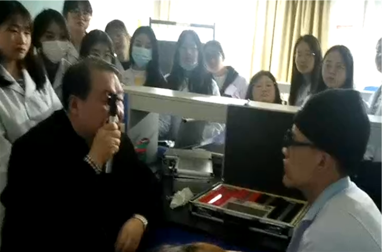 第一次授课,常庆演示真实人眼检影的操作