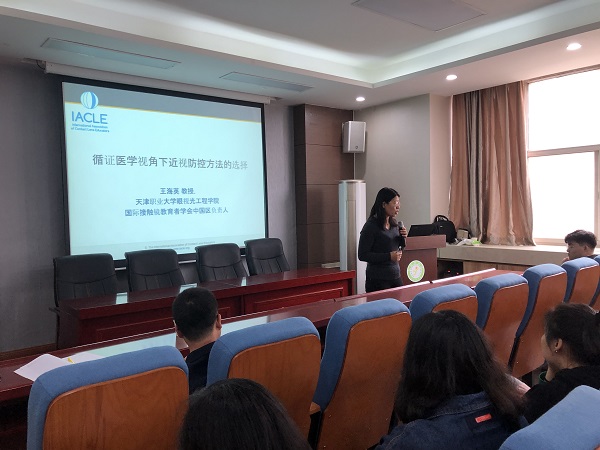 4月10日下午,天津职业大学眼视光工程学院副院长王海英教授来我校做题为《循证医学视角下的近视防控》的精彩讲座。本次讲座由眼视光教研室主任杨扬老师主持,眼视光专业的师生代表及部分其他系部老师参加了讲座。